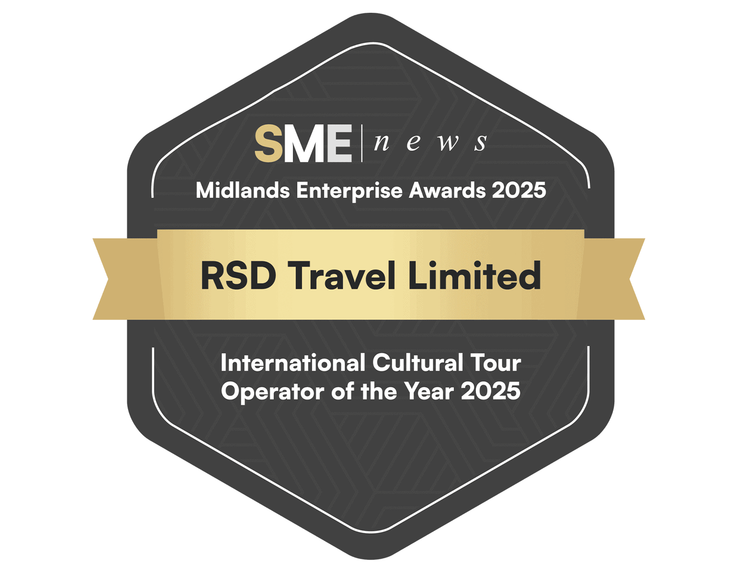 Igjen kan RSD Travel – vårt engelske partnerselskap – glede seg over en spesiell anerkjennelse på det hardt konkurranseutsatte britiske reisemarkedet: RSD Travel har nylig blitt hedret med Midlands Enterprise Award. Og det som „International Cultural Tour Operator of the Year 2025“ – som „Internasjonal kulturreisearrangør av året 2025“.